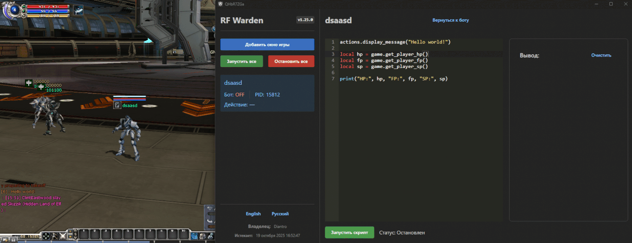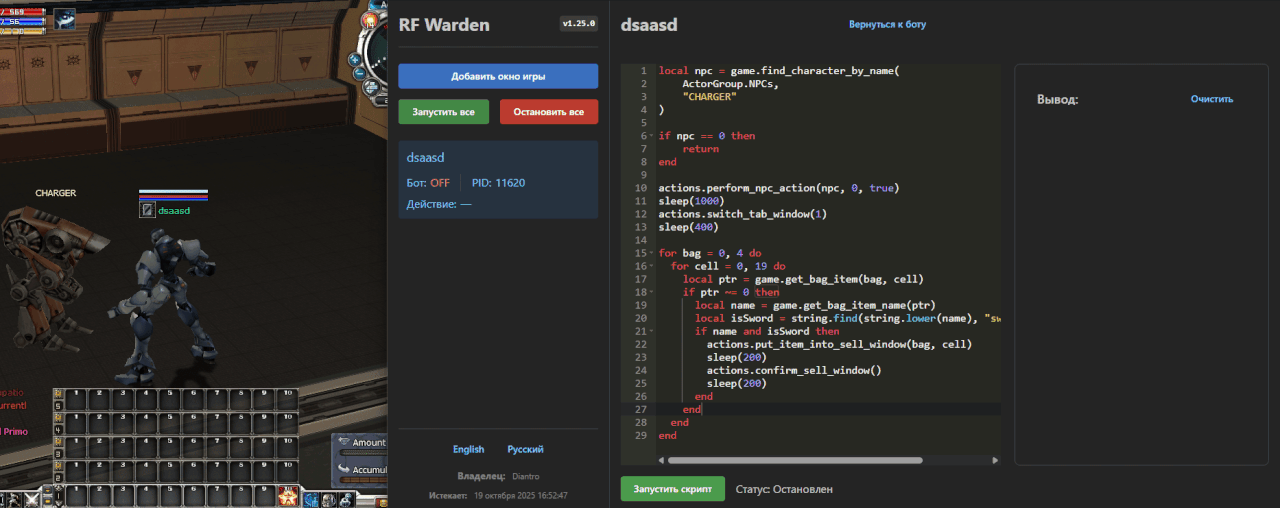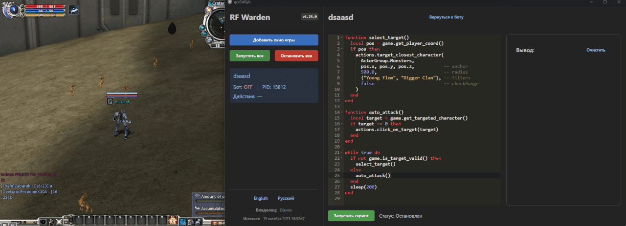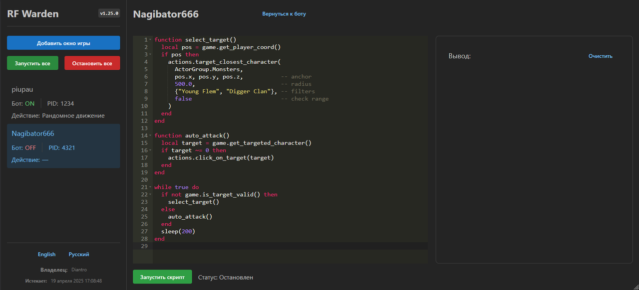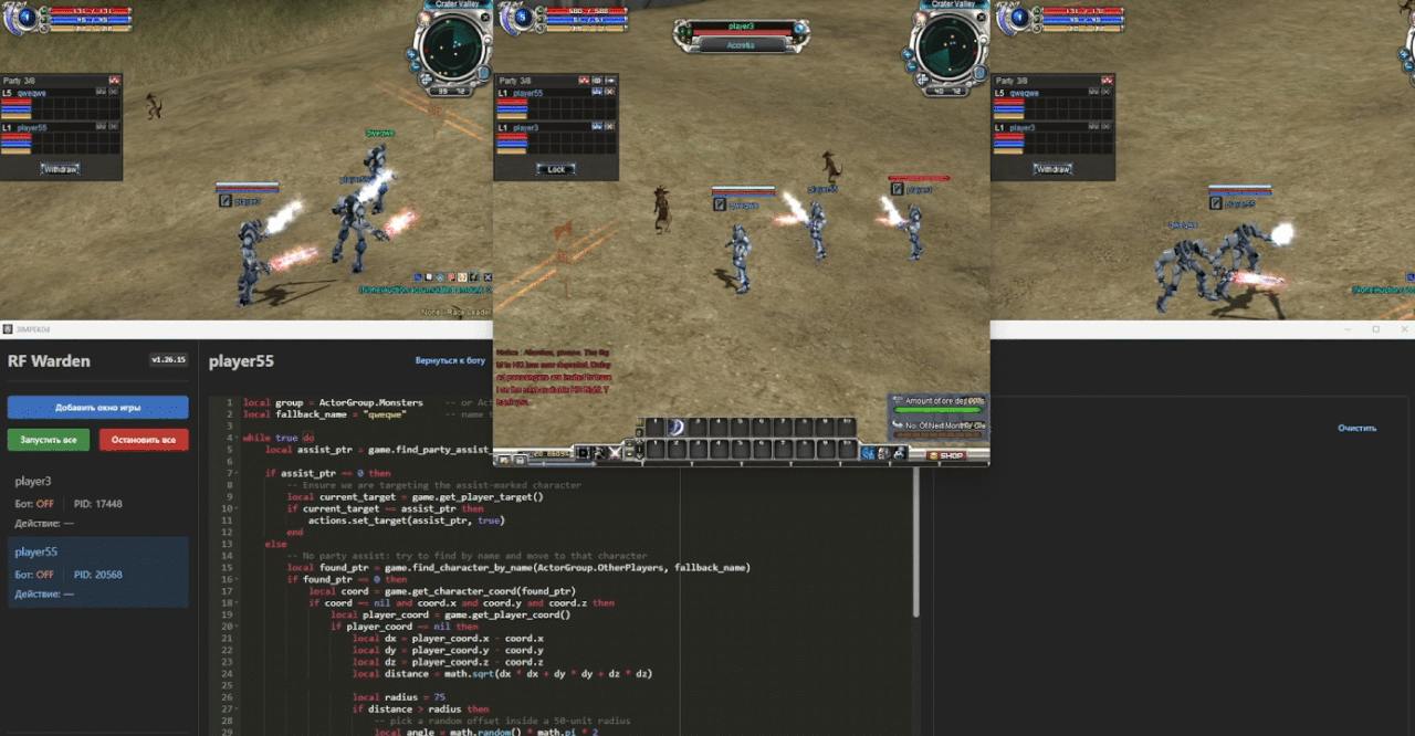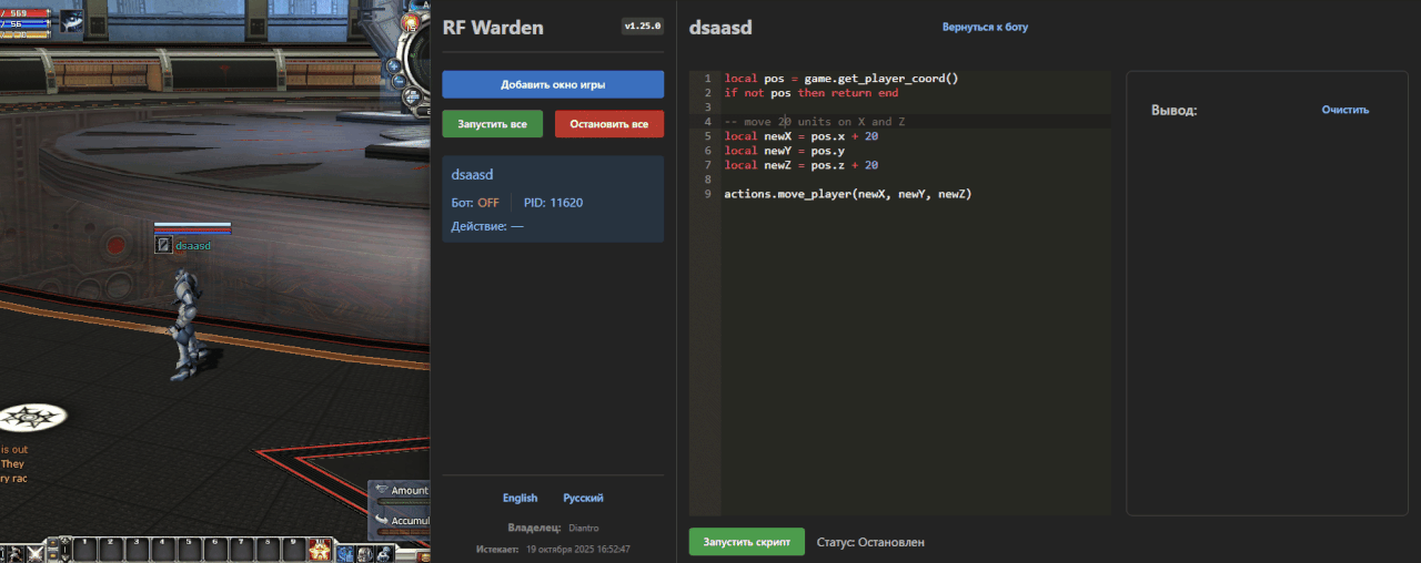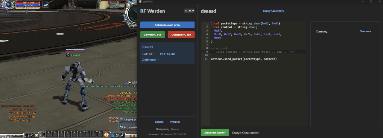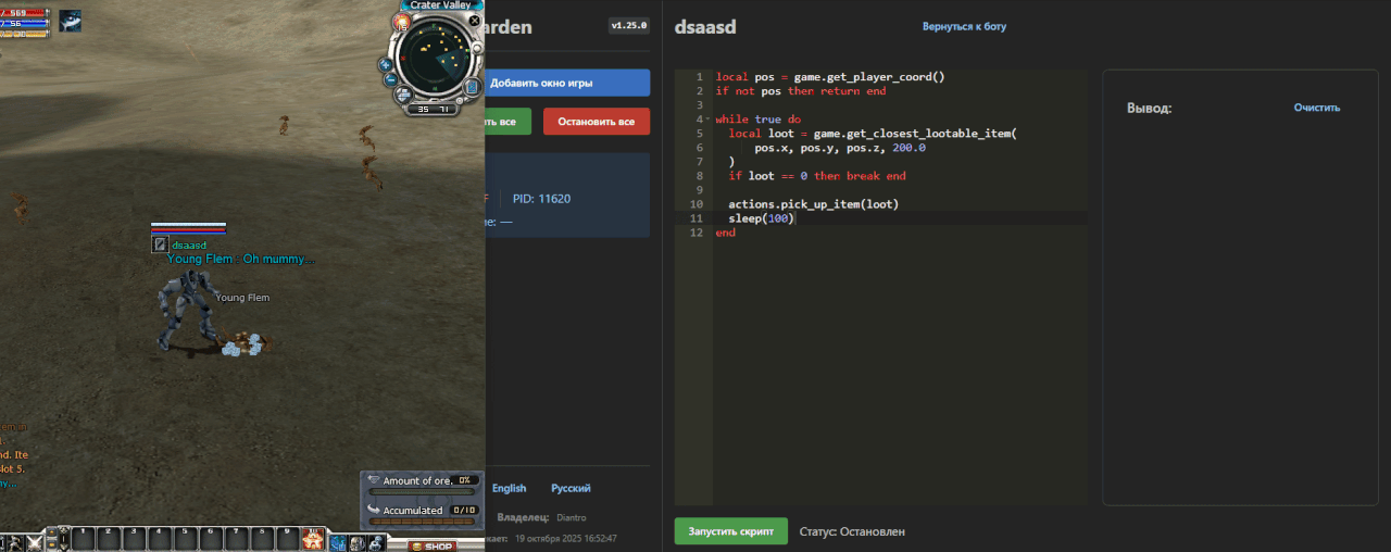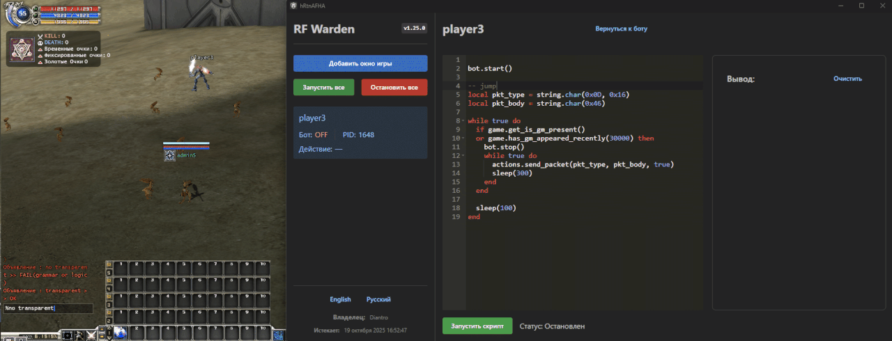 Скрипт запускает основного бота. При появлении ГМ-а бот останавливается, и шлется пакет на прыжок.